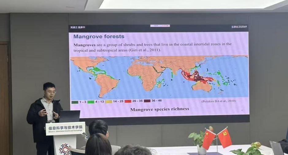 讲座中,张教授围绕海岸带生态与环境监测展开分享。他首先展示了全球红树林物种丰富度的空间分布格局,并深入分析了城市化进程对红树林范围、碳储量及生态系统服务功能的直接和间接等多重影响,强调了人类活动在改变自然环境格局中的重要作用,并明确指出当前研究中虽在红树林生态学和保护领域取得了一定进展,但依然存在诸多研究空白,尤其是在城市化与红树林生态服务之间复杂交互机制领域方面。